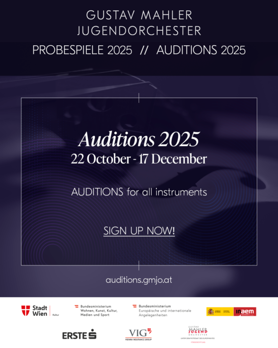 For all further information about the auditions, please visit the GMJO audition website: https://auditions.gmjo.at/